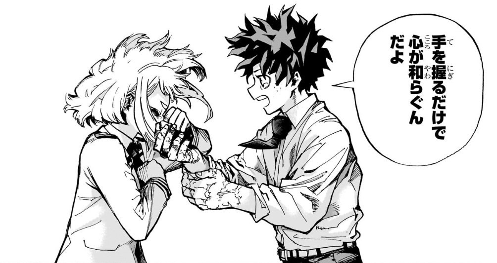 「死柄木を殺せるのか」と。デクは難しいし方法も分からないけど「殺さずに助ける」と言います。