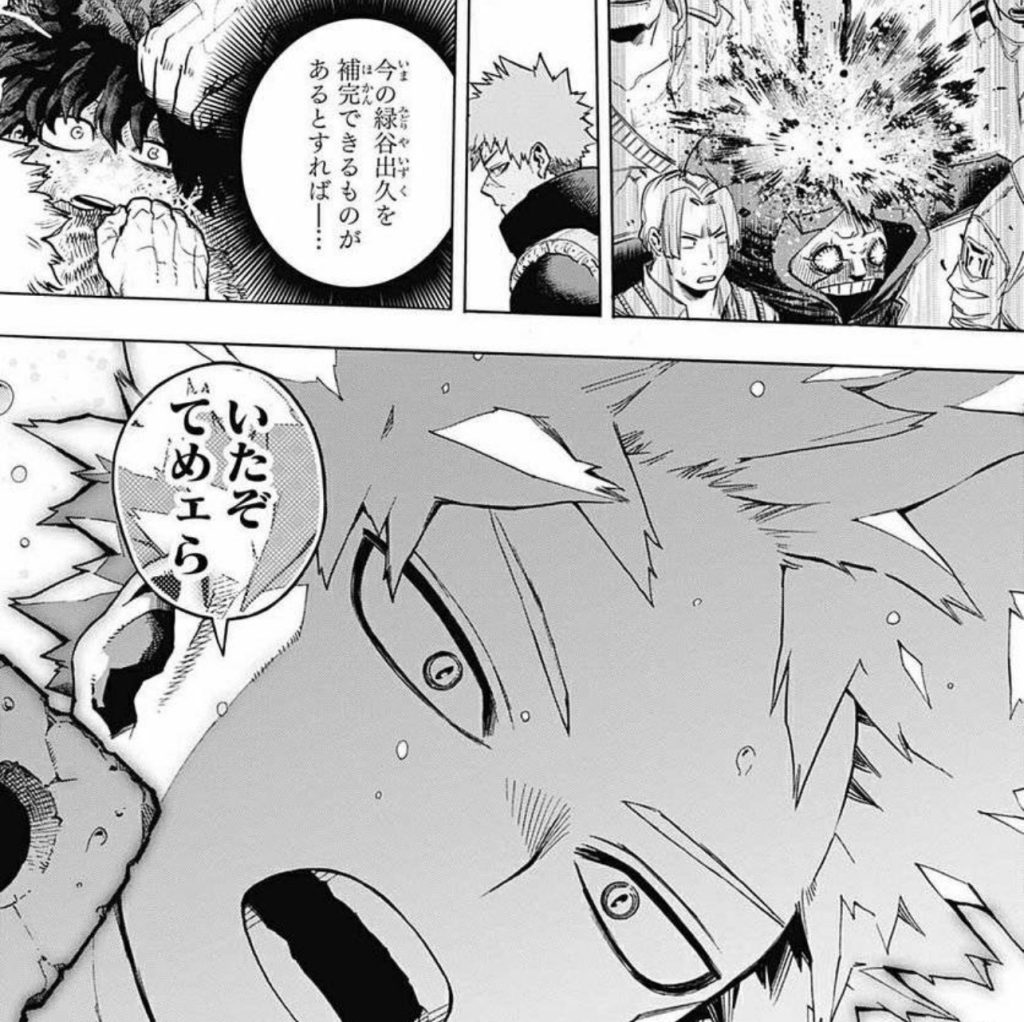 これは1-Aがデクを助けてくれるという意味の描写ですが、メインは爆豪ですよね。